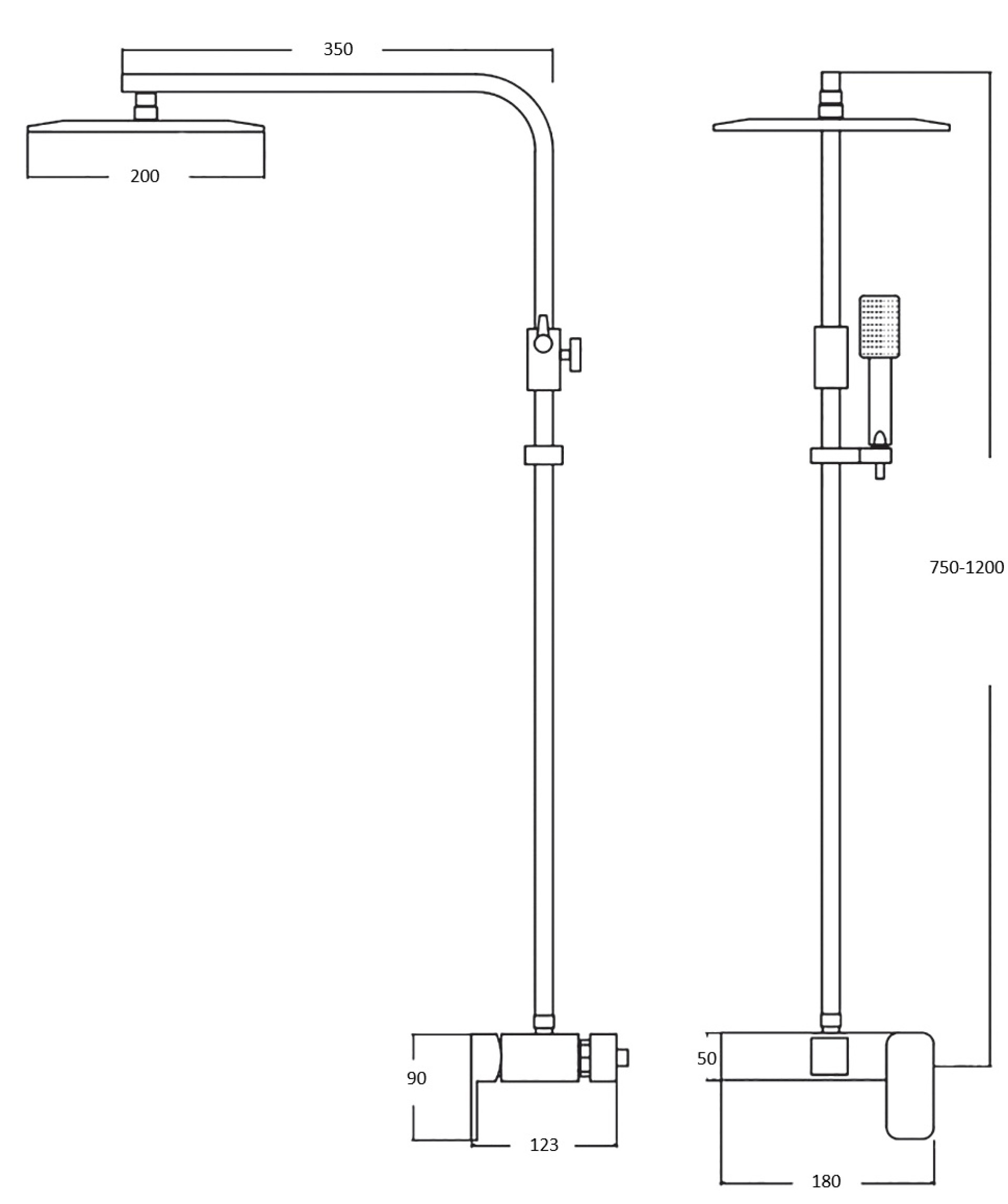 - Chuveiro de mão em ABS com suporte regulável em altura