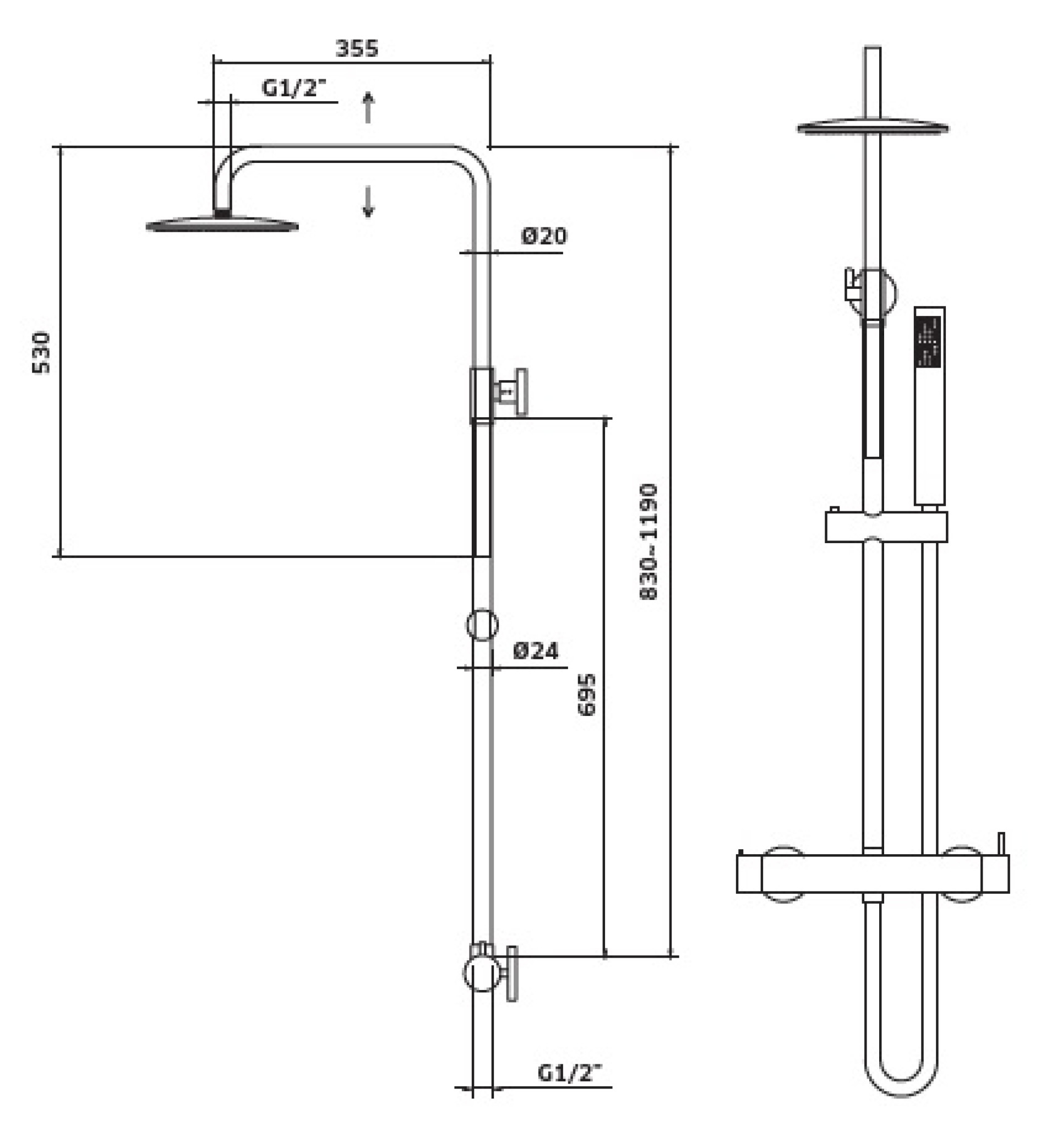 - Chuveiro de mão em ABS com suporte regulável em altura