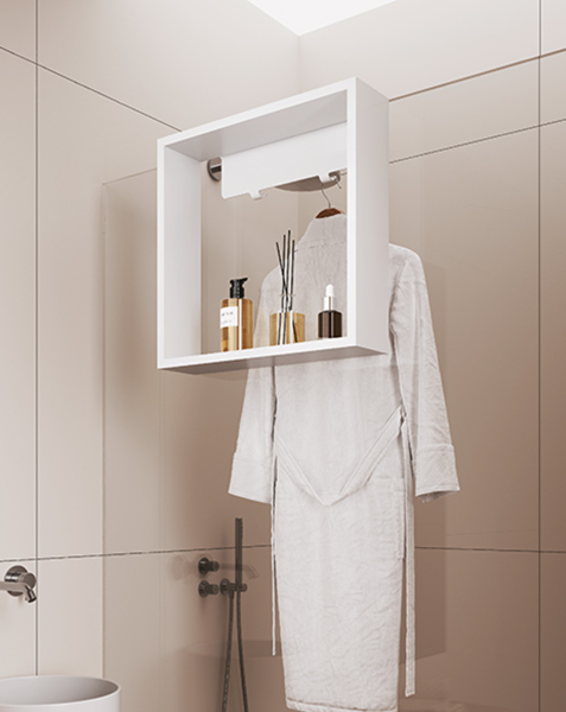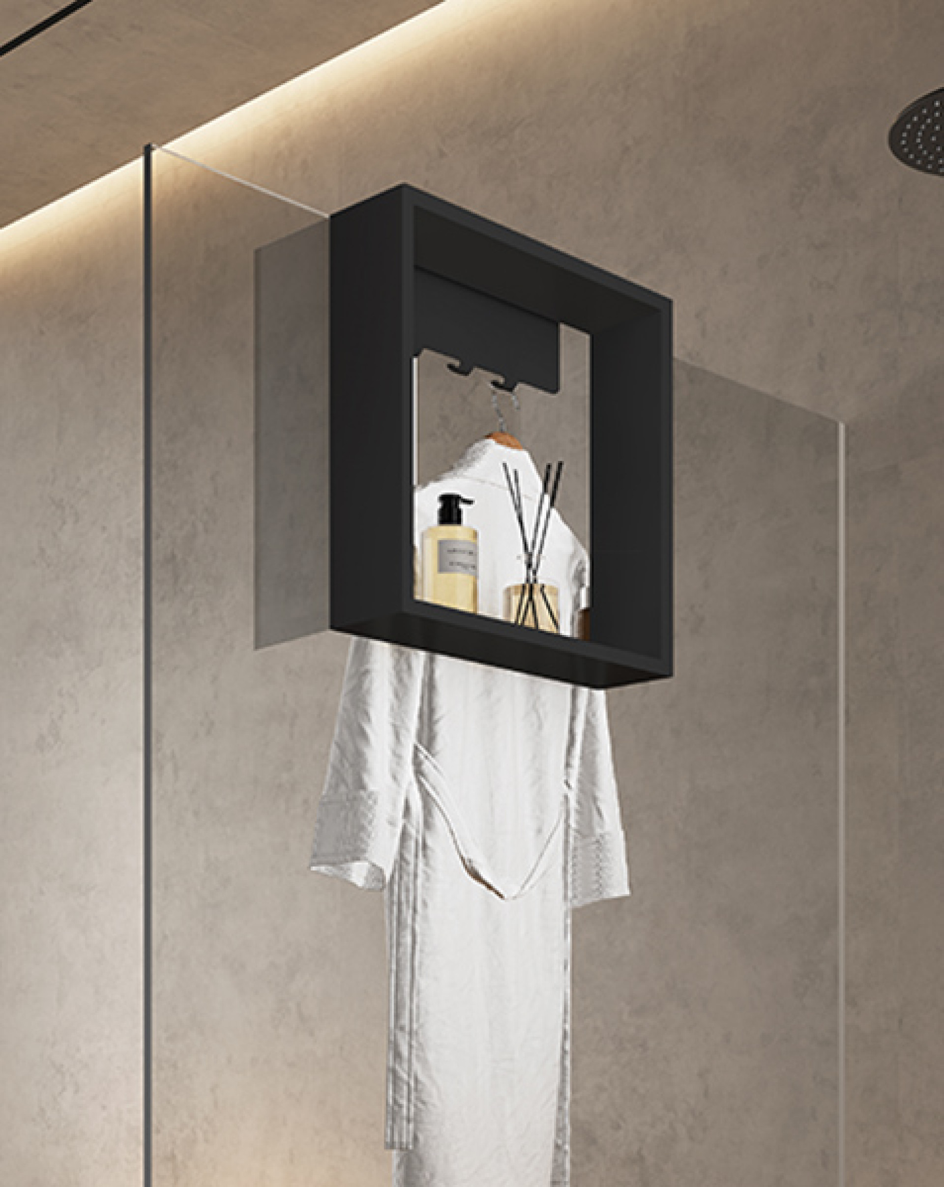 - Prateleira para vidro em alumínio com 3 cabides